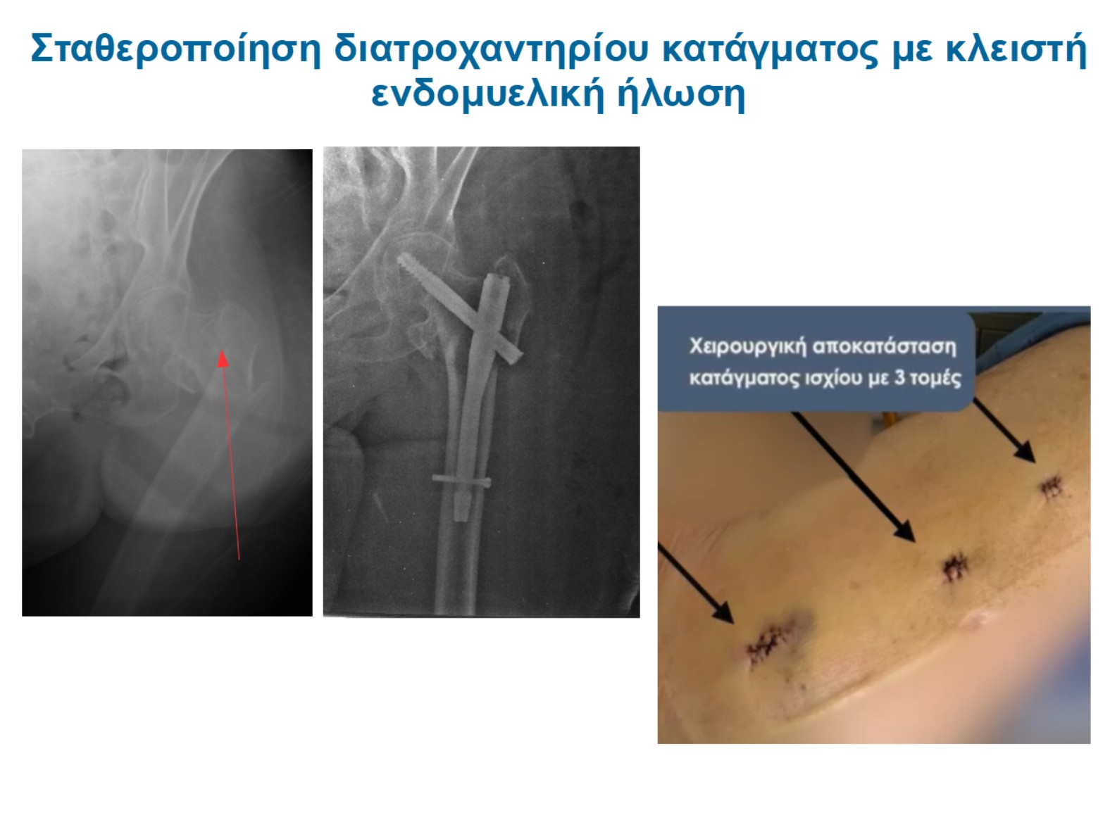Τα διατροχαντήρια κατάγματα πρέπει να αντιμετωπίζονται από χειρουργό ισχίου με γνώση των ελάχιστα επεμβατικών τεχνικών, με εμπειρία σε μεγάλο αριθμό τέτοιων καταγμάτων.