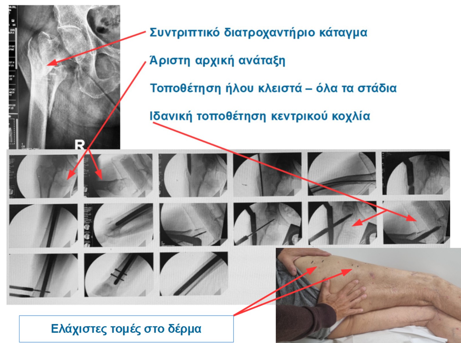 Στα κατάγματα ισχίου, είναι ζωτικής σημασίας να περιορίσουμε το χειρουργικό τραύμα, την απώλεια αίματος, τον πόνο μετά την επέμβαση. Είναι συνεπώς ευεργετική η χρήση μιας μεθόδου που εισήχθη στην ορθοπαιδική πρακτική για αυτούς ακριβώς τους λόγους.