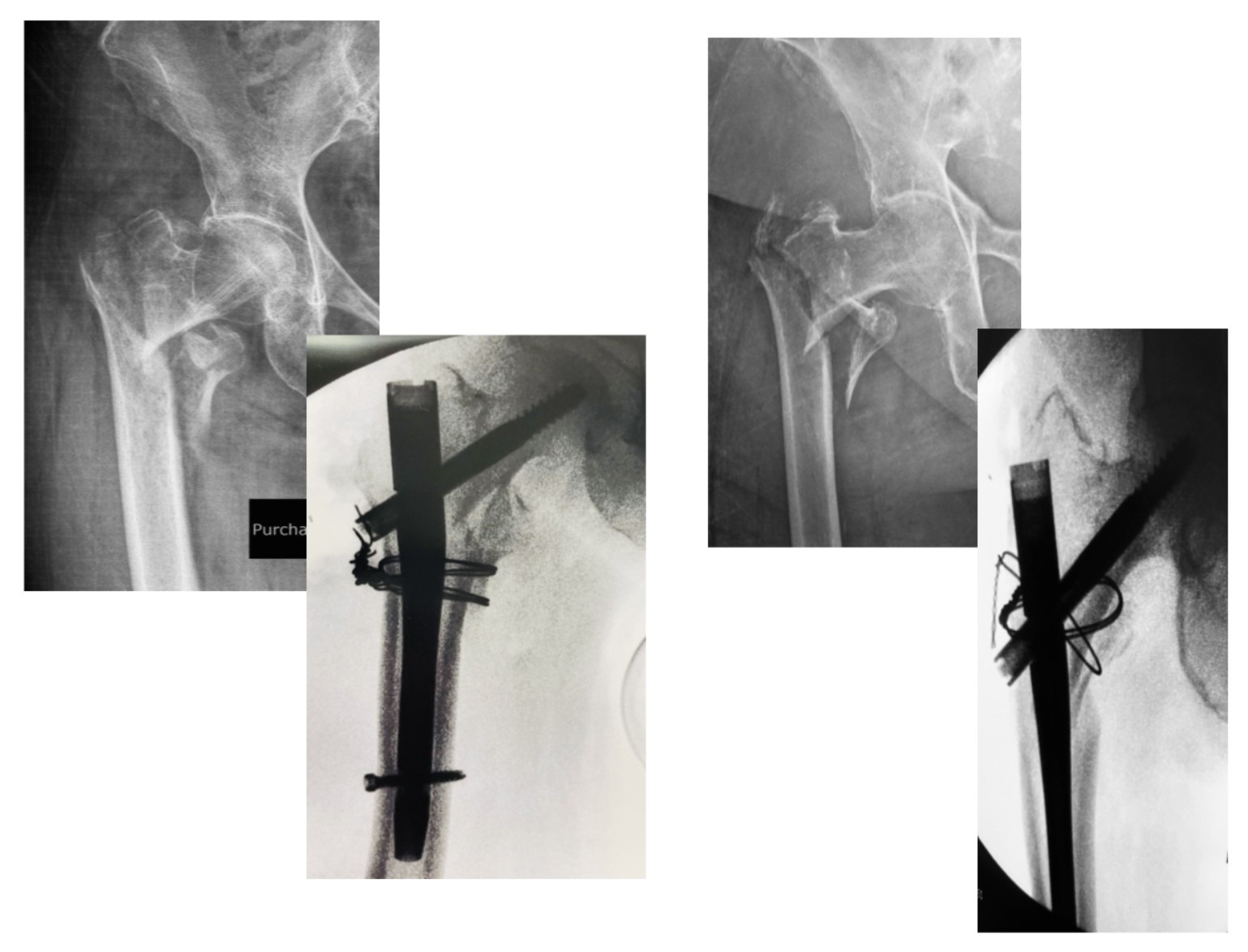 (εικόνα 8, δύο παραδείγματα υπερηλίκων ασθενών που εξαιτίας της μεγάλης συντριβής δεν επετέυχθη κλειστή ανάταξη. Ήταν αναγκαίο λοιπόν να τοποθετηθούν οστικά “σύρματα” με σκοπό να συκρατηθούν τα οστικά τεμάχια: μια τεχνική απαιτητική που απαιτεί μεγάλη εμπειρία)